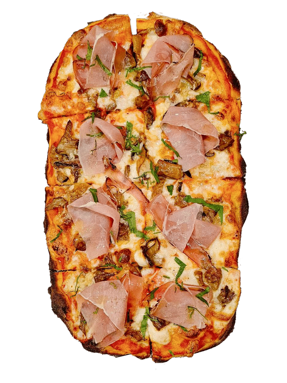 Tomate, queso mozzarella, boletus, gorgonzola, speck, parmesano y nueces